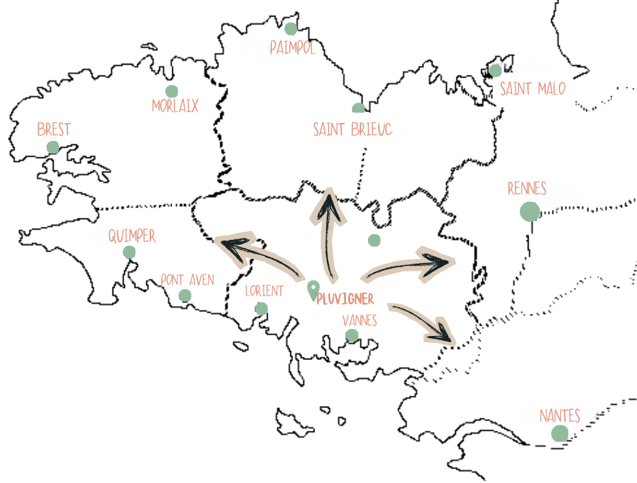 D’autres secteurs peuvent être envisagés selon les projets jusqu’à 2h de route autour de Pluvigner/Bieuzy Lanvaux.